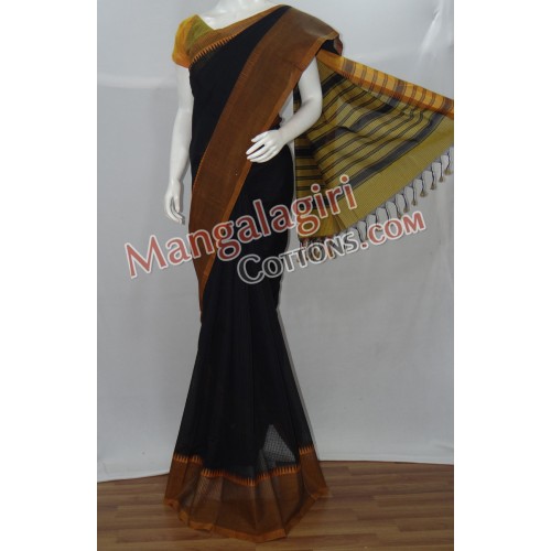 Mangalagiri Cotton Saree with Cotton Boarder. Saree comes with unstiched blouse piece. Weaving pattern: Missing checks weaving.