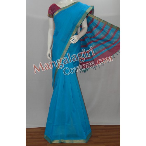 Mangalagiri Cotton Saree with Zari Boarder. Saree comes with unstiched blouse piece. Weaving pattern:Semi thick weaving.