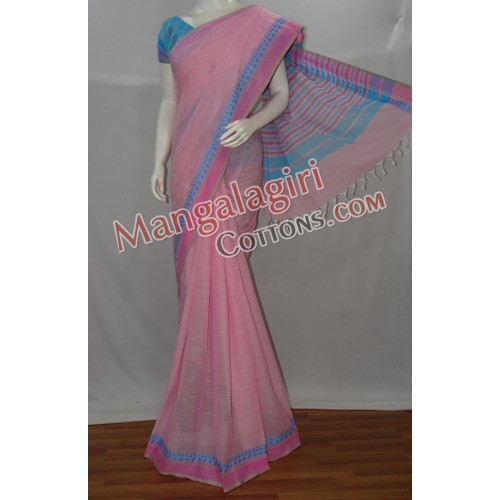 Mangalagiri Semi Handloom Cotton Saree with Cotton Boarder. Saree comes with unstiched blouse piece. Weaving pattern: Semi thick weaving.