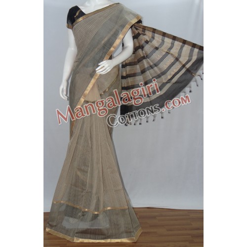 Mangalagiri Cotton Saree with Zari Boarder. Saree comes with unstiched blouse piece. Weaving pattern:Missing Checks weaving.