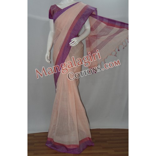 Mangalagiri Semi Handloom Cotton Saree with Cotton Boarder. Saree comes with unstiched blouse piece. Weaving pattern:Semi thick weaving.