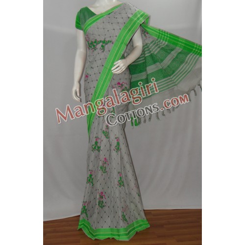 Printed Mangalagiri Semi Handloom Cotton Saree with Cotton Boarder. Saree comes with unstiched blouse piece.