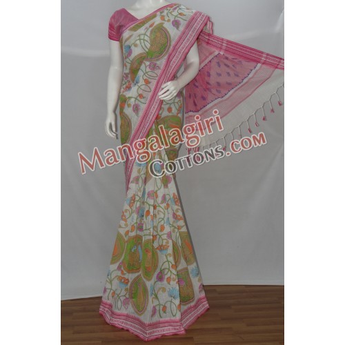 Printed Mangalagiri Semi Handloom Cotton Saree with Cotton Boarder. Saree comes with unstiched blouse piece.