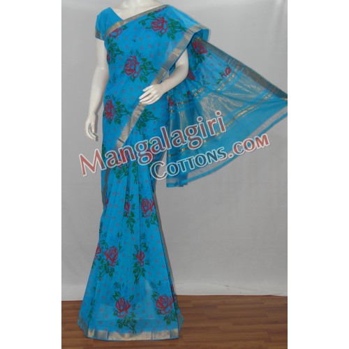 Printed Mangalagiri Cotton Saree with Zari Boarder. Saree comes with unstiched blouse piece.