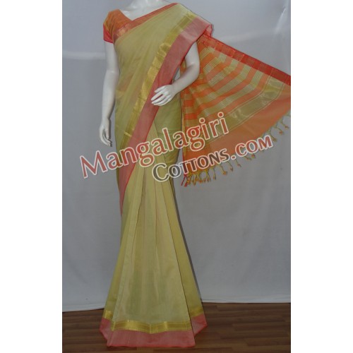Mangalagiri Cotton Saree with Cotton Zari Boarder. Saree comes with unstiched blouse piece.