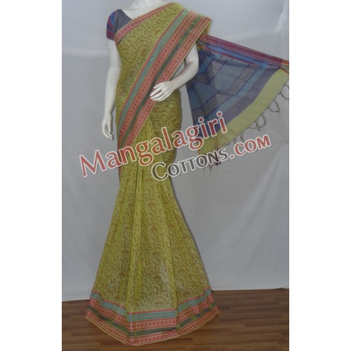 Printed Mangalagiri SemiHandloom Cotton Saree with Cotton Boarder. Saree comes with unstiched blouse piece.