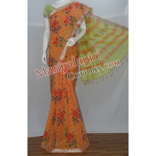 Printed Mangalagiri Cotton Saree with Zari Boarder. Saree comes with unstiched blouse piece.