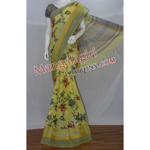 Printed Mangalagiri SemiHandloom Cotton Saree with Cotton Boarder. Saree comes with unstiched blouse piece.