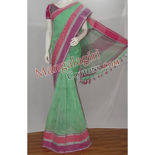 Printed Mangalagiri SemiHandloom Cotton Saree with Cotton Boarder. Saree comes with unstiched blouse piece.