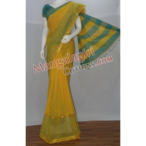 Mangalagiri Cotton Saree with Cotton Boarder. Saree comes with unstiched blouse piece.