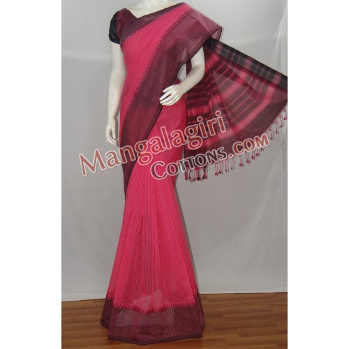 Mangalagiri Cotton Saree with Cotton Boarder. Saree comes with unstiched blouse piece.