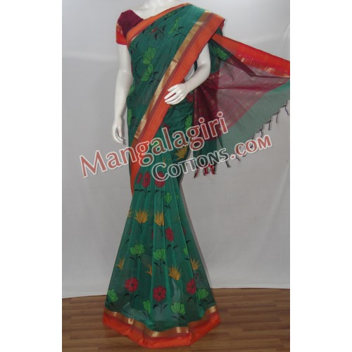 Printed Mangalagiri SemiHandloom Cotton Saree with Cotton Boarder. Saree comes with unstiched blouse piece.
