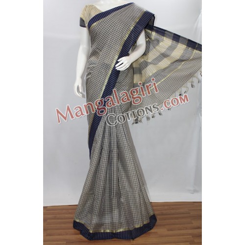 Mangalagiri SemiHandloom Cotton Saree with Cotton Boarder. Saree comes with unstiched blouse piece. Weaving pattern:Semi thick weaving.