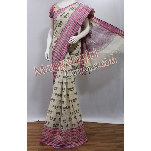 Printed Mangalagiri Power Loom Cotton Saree with Cotton Boarder. Saree comes with unstiched blouse piece.