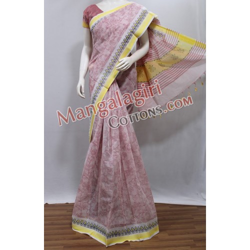 Printed Mangalagiri Power Loom Cotton Saree with Cotton Boarder. Saree comes with unstiched blouse piece.