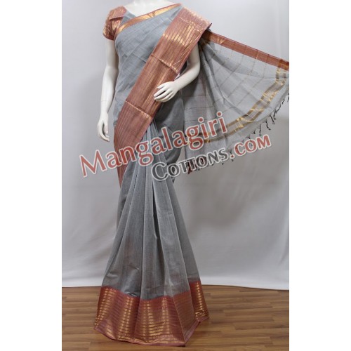 Mangalagiri Pure Cotton Saree with Cotton Zari Boarder. Saree comes with unstiched blouse piece. Weaving pattern:Semi thick weaving.