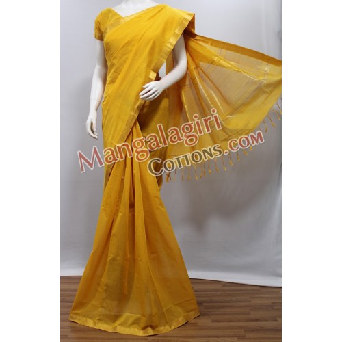 Mangalagiri Pure Cotton Saree with Cotton Zari Boarder. Saree comes with unstiched blouse piece. Weaving pattern:Semi thick weaving.
