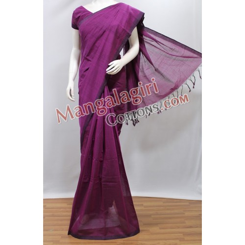 Mangalagiri Pure Cotton Saree with Plain Boarder. Saree comes with unstiched blouse piece. Weaving pattern:Semi thick weaving.
