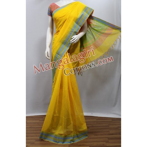 Mangalagiri Power Loom Cotton Saree with Cotton Boarder. Saree comes with unstiched blouse piece.