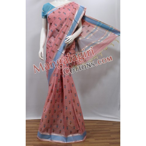 Printed Mangalagiri Power Loom Cotton Saree with Cotton Boarder. Saree comes with unstiched blouse piece.