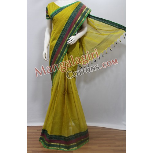 Mangalagiri Power Loom Cotton Saree with Cotton Boarder. Saree comes with unstiched blouse piece.