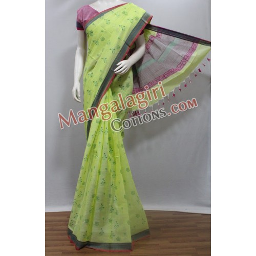 Mangalagiri Powerloom Cotton Printed Saree with Thread Border. Saree comes with Unstitched Blouse Piece.