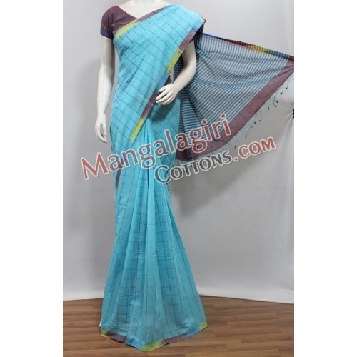 Mangalagiri Pure Cotton Saree with Plain Boarder. Saree comes with unstiched blouse piece. Weaving pattern:Semi thick weaving.