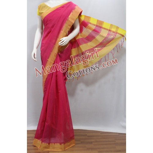 Mangalagiri Handloom Pure Cotton Saree with Gold Zari Border. Saree comes with Unstitched Blouse Piece.