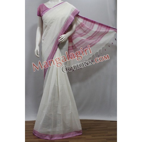 Mangalagiri Powerloom Cotton Saree with Cotton Thread Border. Saree comes with Unstitched Blouse Piece.