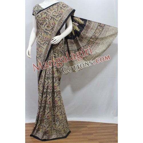 Kalamkari Hand Printed Cotton Saree. Saree comes with Unstitched Blouse Piece.