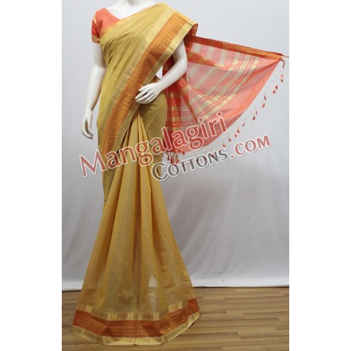 Mangalagiri Handloom Pure Cotton Saree with Gold Zari Border. Saree comes with Unstitched Blouse Piece.