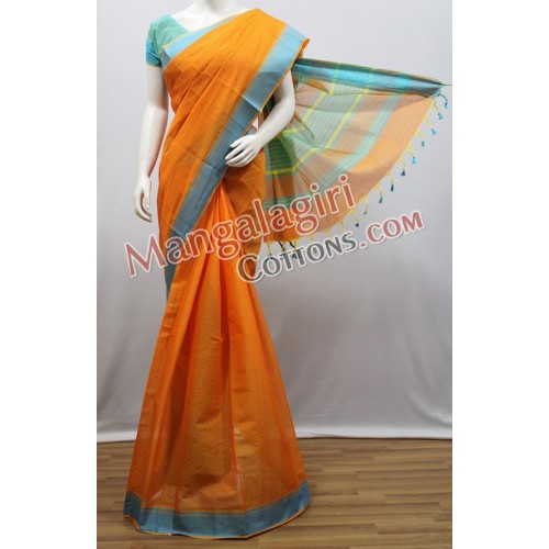 Mangalagiri Powerloom Cotton Saree with Cotton Thread Border. Saree comes with Unstitched Blouse Piece.