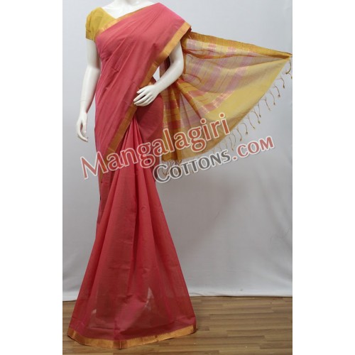 Mangalagiri Handloom Pure Cotton Saree with Gold Zari Border. Saree comes with Unstitched Blouse Piece.