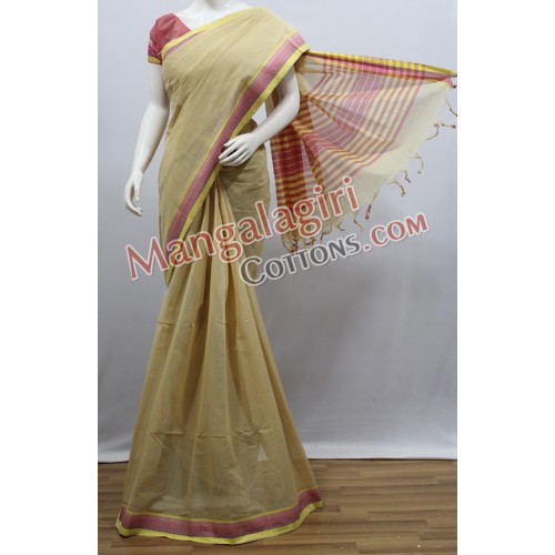 Mangalagiri Powerloom Cotton Saree with Cotton Thread Border. Saree comes with Unstitched Blouse Piece.