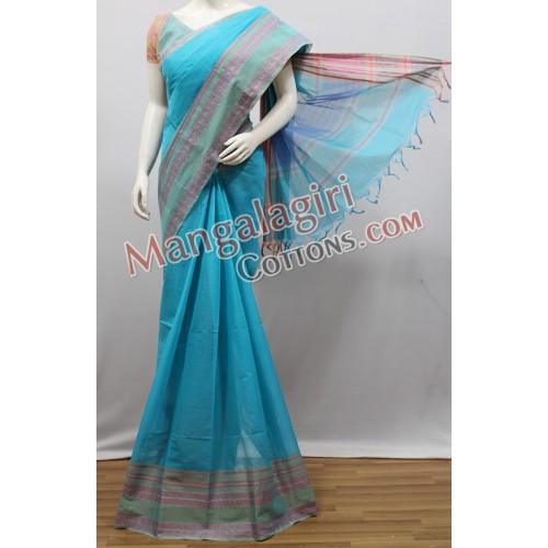 Mangalagiri Powerloom Cotton Saree with Cotton Thread Border. Saree comes with Unstitched Blouse Piece.