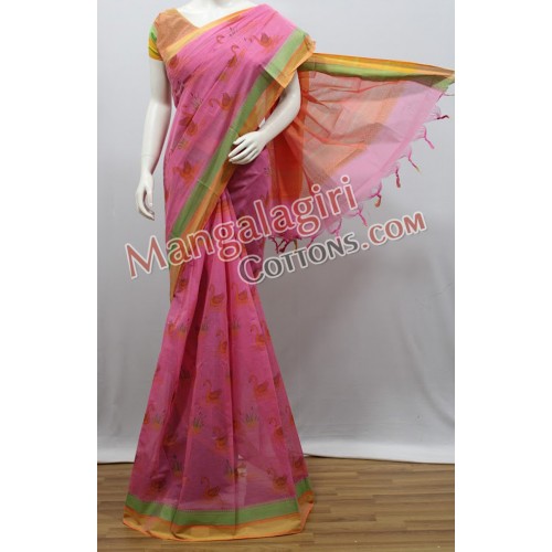 Mangalagiri Powerloom Cotton Printed Saree with Cotton Thread Border. Saree comes with Unstitched Blouse Piece.
