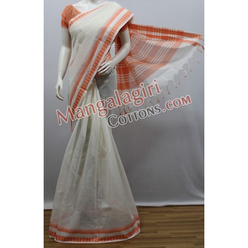 Mangalagiri Powerloom Cotton Saree with Cotton Thread Border. Saree comes with Unstitched Blouse Piece.