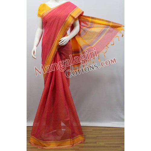 Mangalagiri Powerloom Cotton Saree with Cotton Thread Border. Saree comes with Unstitched Blouse Piece.