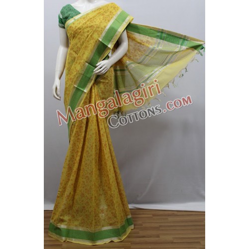 Mangalagiri Powerloom Cotton Printed Saree with Silver Zari Border. Saree comes with Unstitched Blouse Piece.