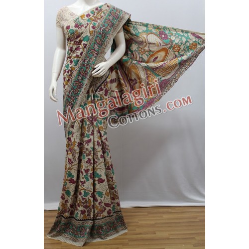 Kalamkari Hand Printed Cotton Saree. Saree comes with Unstitched Blouse Piece.