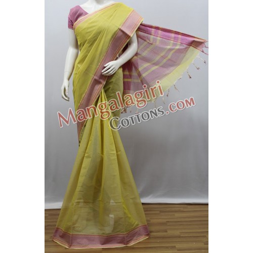 Mangalagiri Powerloom Cotton Saree with Cotton Thread Border. Saree comes with Unstitched Blouse Piece.