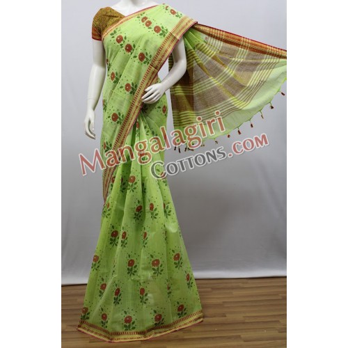 Mangalagiri Powerloom Cotton Printed Saree with Cotton Thread Border. Saree comes with Unstitched Blouse Piece.
