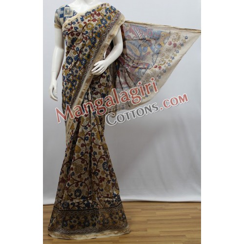 Chanderi Kalamkari Print Saree with Zari Boarder. Saree comes with Unstitched Blouse Piece.