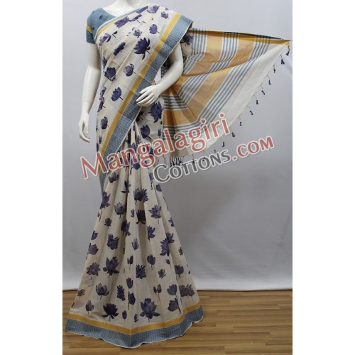Mangalagiri Powerloom Cotton Digital Printed Saree with Cotton Thread Border. Saree comes with Unstitched Blouse Piece.