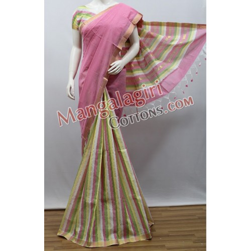 Mangalagiri Handloom Pure Cotton Langavoni Saree with Gold Zari Border. Saree comes with Unstitched Blouse Piece.