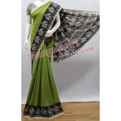 Kalamkari Hand Printed Cotton Saree. Saree comes with Unstitched Blouse Piece.