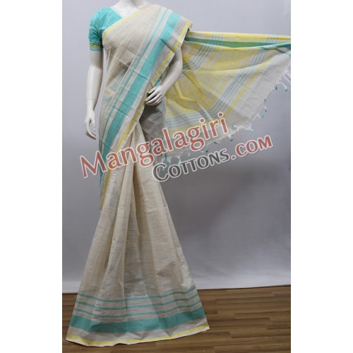Mangalagiri Powerloom Cotton Saree with Cotton Thread Border. Saree comes with Unstitched Blouse Piece.