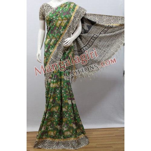 Kalamkari Silk Saree. Saree comes with Unstitched Blouse Piece.