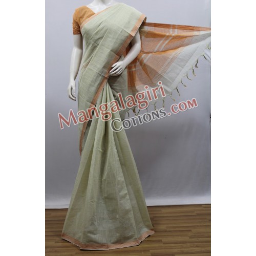 Mangalagiri Powerloom Cotton Saree with Cotton Thread Border. Saree comes with Unstitched Blouse Piece.