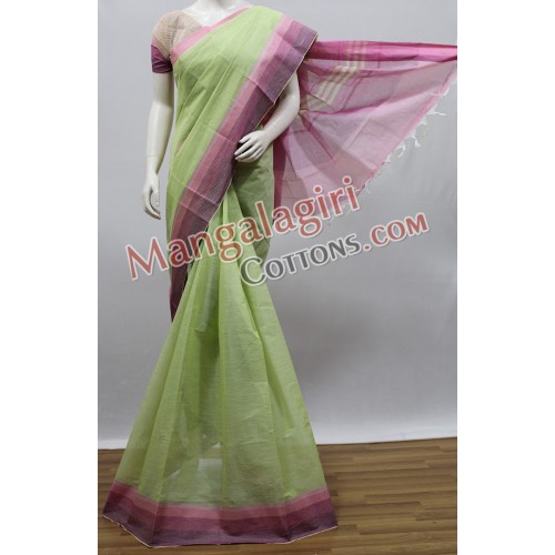 Mangalagiri Powerloom Cotton Saree with Cotton Thread Border. Saree comes with Unstitched Blouse Piece.